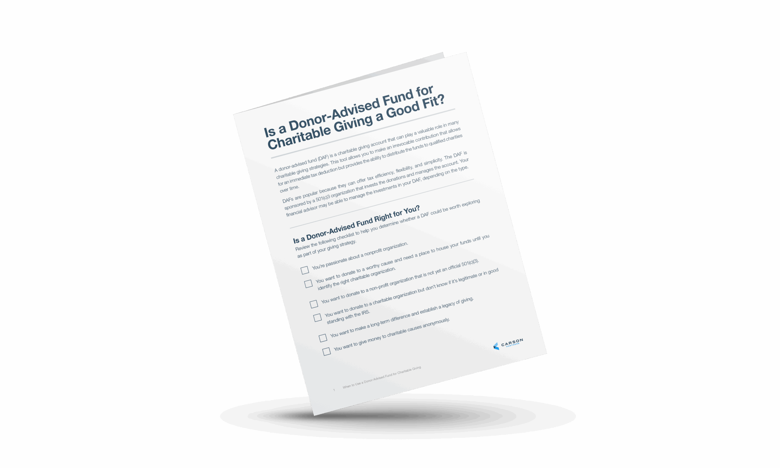 If you’re interested in making a lasting impact for the causes that matter most to you, you may want to include charitable giving in your financial plan. In this on-demand webinar, Carson’s Heather Zack, Private Client Services – Solutions Strategist, will share information about charitable …